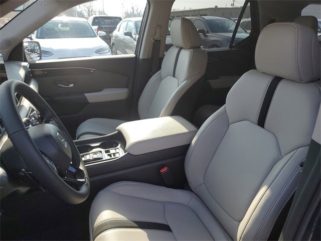 AWD, All Season Mats, H-Mark Emblems, Passport Insert, 4-Wheel Disc Brakes, 9 Speakers, ABS brakes, Adaptive Cruise Control: Adaptive Cruise Control (ACC) with Low-Speed Follow, Air Conditioning, Alloy wheels, Apple CarPlay/Android Auto, Auto High-beam Headlights, Auto-dimming Rear-View mirror, Automatic temperature control, Blind Spot Information (BSI) System warning, Brake assist, Compass, Delay-off headlights, Driver door bin, Driver vanity mirror, Driver's Seat Mounted Armrest, Dual front impact airbags, Dual front side impact airbags, Electronic Stability Control, Emergency communication system: HondaLink, Exterior Parking Camera Rear, Four wheel independent suspension, Front anti-roll bar, Front Bucket Seats, Front Center Armrest, Front dual zone A/C, Front reading lights, Fully automatic headlights, Heated door mirrors, Heated Front Bucket Seats, Heated front seats, HVAC memory, Illuminated entry, Knee airbag, Lane departure: Lane Keeping Assist System (LKAS) active, Leather and Cloth Seat Trim, Leather steering wheel, Low tire pressure warning, Memory seat, Navigation system: Google Maps, Occupant sensing airbag, Outside temperature display, Overhead airbag, Overhead console, Panic alarm, Passenger door bin, Passenger seat mounted armrest, Passenger vanity mirror, Power door mirrors, Power driver seat, Power Liftgate, Power passenger seat, Power steering, Power windows, Radio data system, Radio: Audio System with 9 Speakers, Rear air conditioning, Rear anti-roll bar, Rear reading lights, Rear seat center armrest, Rear window defroster, Rear window wiper, Remote keyless entry, Security system, Speed control, Speed-sensing steering, Split folding rear seat, Spoiler, Steering wheel mounted audio controls, Tachometer, Telescoping steering wheel, Tilt steering wheel, Traction control, Trip computer, Variably intermittent wipers, and Wheels: 18 Shark Grey Alloy.*