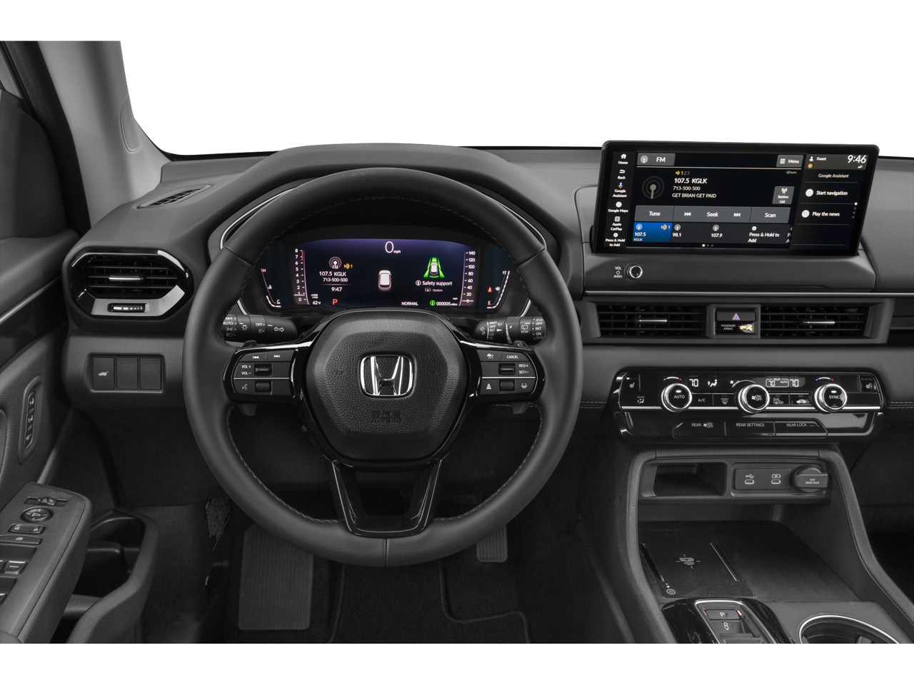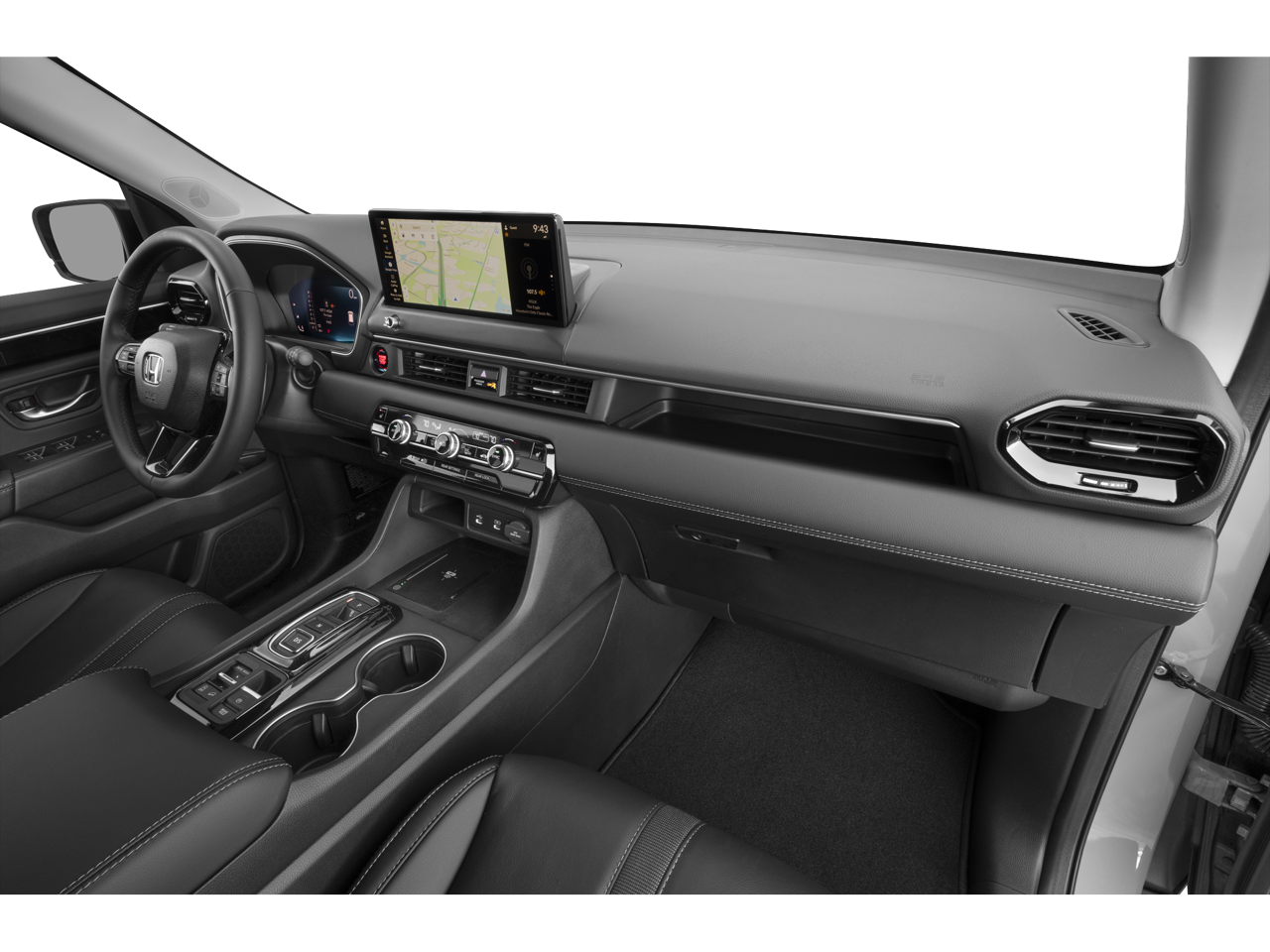 3rd row seats: split-bench, 4-Wheel Disc Brakes, 9 Speakers, ABS brakes, Adaptive Cruise Control: Adaptive Cruise Control (ACC) with Low-Speed Follow, Air Conditioning, Alloy wheels, Apple CarPlay/Android Auto, Auto High-beam Headlights, Auto-dimming Rear-View mirror, Automatic temperature control, Blind Spot Information (BSI) System warning, Brake assist, Bumpers: body-color, Compass, Delay-off headlights, Driver door bin, Driver vanity mirror, Dual front impact airbags, Dual front side impact airbags, Electronic Stability Control, Emergency communication system: HondaLink, Exterior Parking Camera Rear, Four wheel independent suspension, Front anti-roll bar, Front Bucket Seats, Front Center Armrest, Front dual zone A/C, Front fog lights, Front reading lights, Fully automatic headlights, Heated door mirrors, Heated Front Bucket Seats, Heated front seats, HondaLink, HondaLink Subscription Services, Illuminated entry, Knee airbag, Lane departure: Lane Keeping Assist System (LKAS) active, Leather-Trimmed Seat Trim with Fabric Accent, Low tire pressure warning, Memory seat, Navigation system: Google Maps, Occupant sensing airbag, Outside temperature display, Overhead airbag, Overhead console, Panic alarm, Passenger door bin, Passenger vanity mirror, Power door mirrors, Power driver seat, Power Liftgate, Power passenger seat, Power steering, Power windows, Radio data system, Radio: 245-Watt Audio System, Rear air conditioning, Rear anti-roll bar, Rear reading lights, Rear seat center armrest, Rear window defroster, Rear window wiper, Reclining 3rd row seat, Remote keyless entry, Security system, Speed control, Speed-sensing steering, Speed-Sensitive Wipers, Split folding rear seat, Spoiler, Steering wheel mounted audio controls, Tachometer, Telescoping steering wheel, Tilt steering wheel, Traction control, Trip computer, Turn signal indicator mirrors, Variably intermittent wipers, and Wheels: 18 Pewter Gray Machined Face.