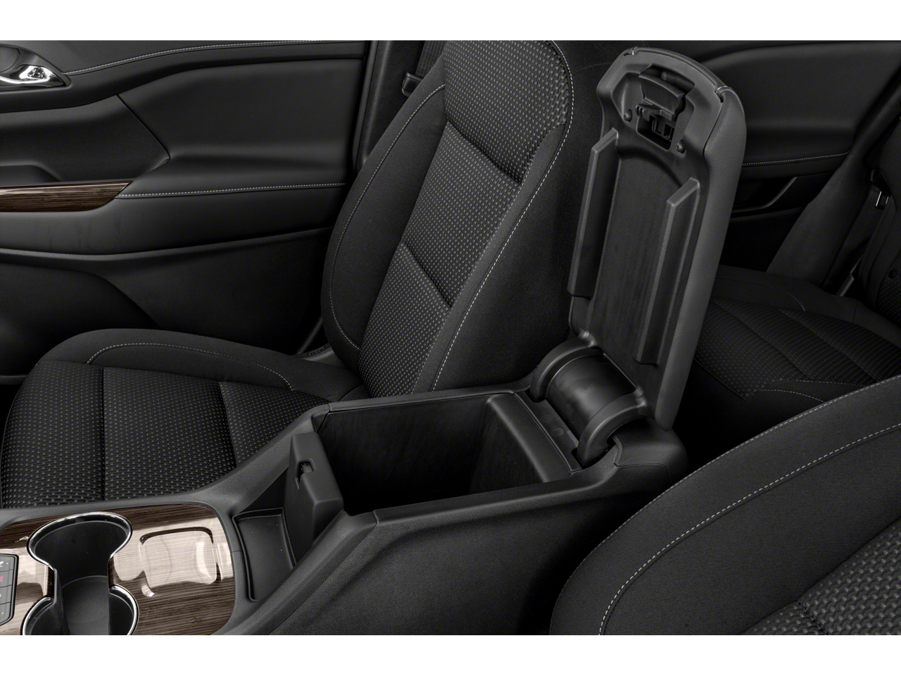 - Console, front center with 2 cup holders and storage, includes rear storage drawer